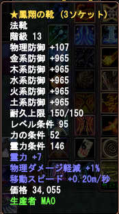 安く買った2ソケのレグルガントくらいしか99装備はありません。