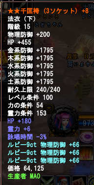 物理減免がつくという部分でライラローブ上下にして二段階目の千匡法衣には当面する気がなかったのですが、二段階にした方が恩恵はでかいのではないかという指摘というか意見を聞いて考えています。