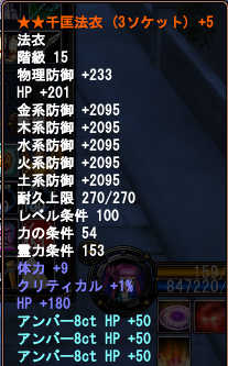 法衣上はクリティカル+1%に体力、HPがオプションでつき、