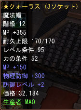 魔導の仙転生で物理防御12000程度までいくのであれば、帽子はクォーラスにこだわらず、夜叉黄龍でそれなりの減免率を確保しつつ精錬でのHPを確保という選択肢がいつか出てくるかもしれません。