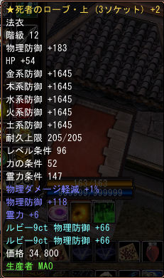 鳳翔の法衣上の精錬でのHPの伸びは気になりますが、しょせん法衣なので物理防御数値のある死者のローブに決めました。