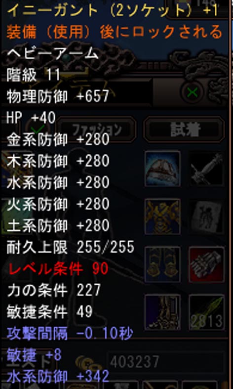 斧は力が足りないので悩み中です。おそらく90レベルでは適正斧は持てないので、適正やや下の斧か装備需給マイナスOPのついた生産斧ですね。