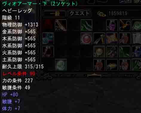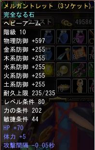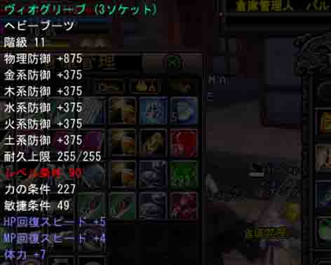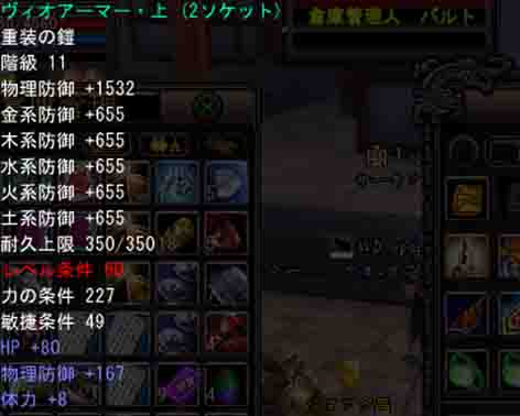 やはり軽装備だけあって、五行防御の数値は悪くないですね。OPに物理防御もついているので、物理防御値もメルガントレより―50程度しか変わりません。