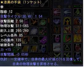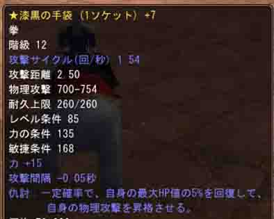毎回簡単にタゲを奪われてしまうんですが、攻撃間隔マイナスが漆黒の手袋と血月腕。これで攻撃間隔マイナス1.0に加え、今回の精錬で簡単にタゲは奪われない……といいな(苦笑)。